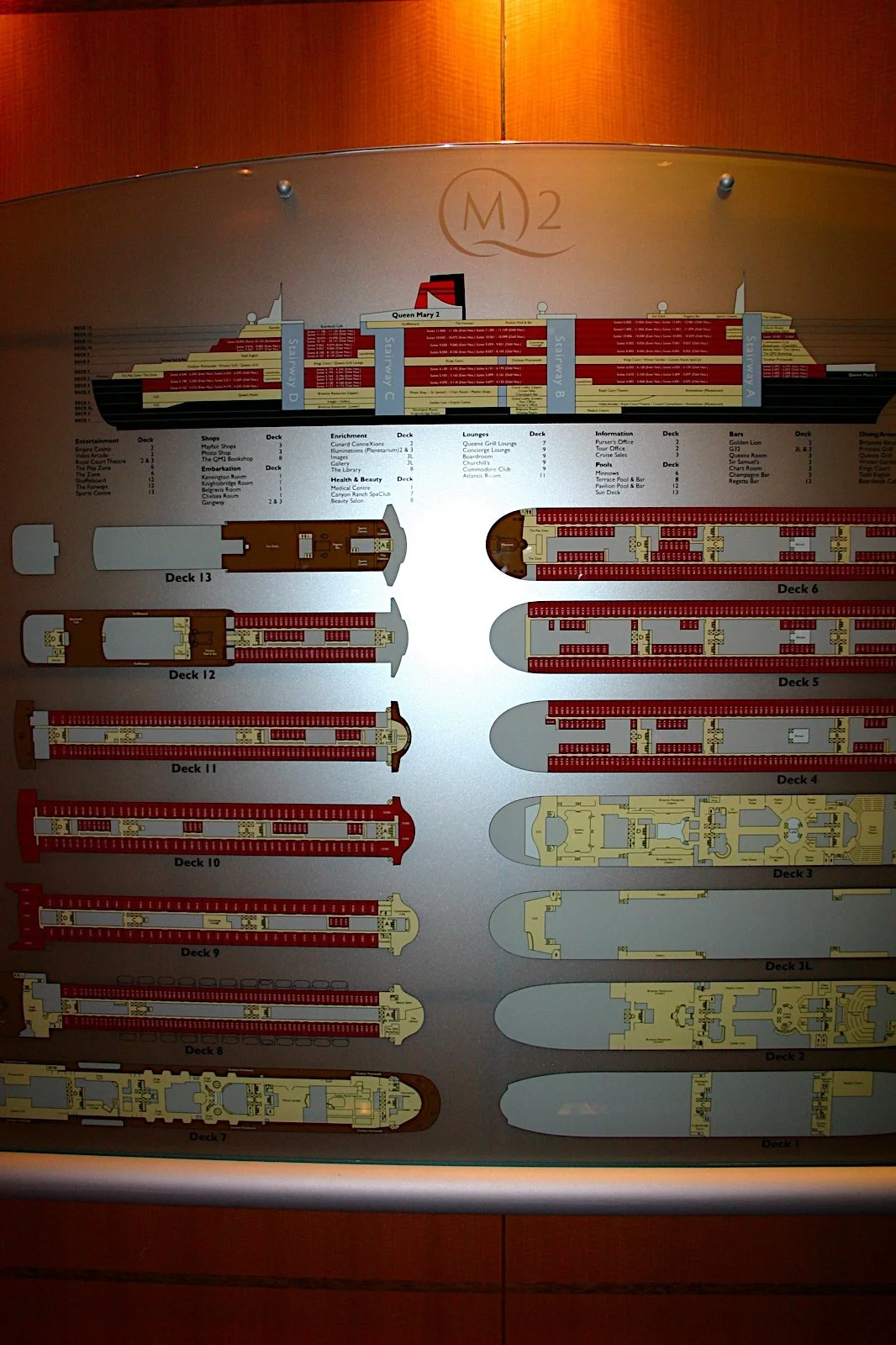 2016: A more extensive remastering was completed at the same shipyard, with upgrades to the Queens and Princess Grill suites and restaurants, redesign of the Carinthia Lounge, and addition of The Verandah specialty restaurant.